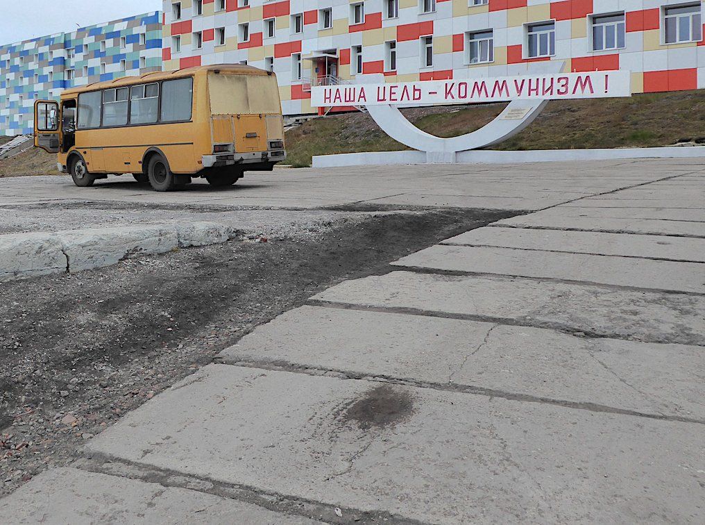 Kaum zu glauben, dass man hier anders sein kann als depressiv. Kaum zu glauben, dass man hier nicht jede Nacht von Alpträumen heimgesucht wird. Kaum zu glauben, dass es entlang der einzigen Hauptstraße, die unscheinbar von dem Brachland abgeht, irgendwo Restaurants, eine Kirche, ein Museum, kleine Geschäfte, ein Postamt, ein Hotel mit Bar und ein öffentliches Schwimmbad gibt. Sogar ein kleines russisches Konsulat. Menschen trifft man jedoch selten am Tag. Kein Wunder, denn sie arbeiten ja auch noch heute zumeist unter Tage. Doch es gibt sie. Wirklich. Sogar Kinder und eine Schule.