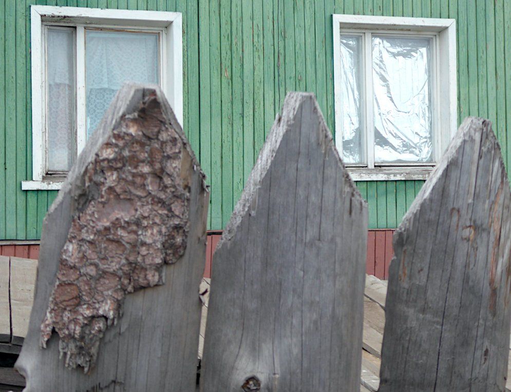 Viele Häuser könnten im nächsten Winter unter der Schneelast zusammenbrechen, zerborstene Scheiben, zerbrochene Treppen, verwittertes Holz. Der Lack ist abgeblättert, die Farben verwaschen, das Wellblech verzogen, der Verfall allgegenwärtig. Die einst bestimmt sehr hübschen Häuser wirken wie Gespenster aus der Vergangenheit. Sie sind ein wenig gruselig, scheinen mich mit ihren traurigen leeren Fensteraugen zu verfolgen und halten mich warnend auf Distanz. „Komm mir bloß nicht zu nahe, schon gar nicht rein“ raunen sie mir ins Ohr. Warum denke ich bloß immer wieder an dieses Haus im Film Psycho?