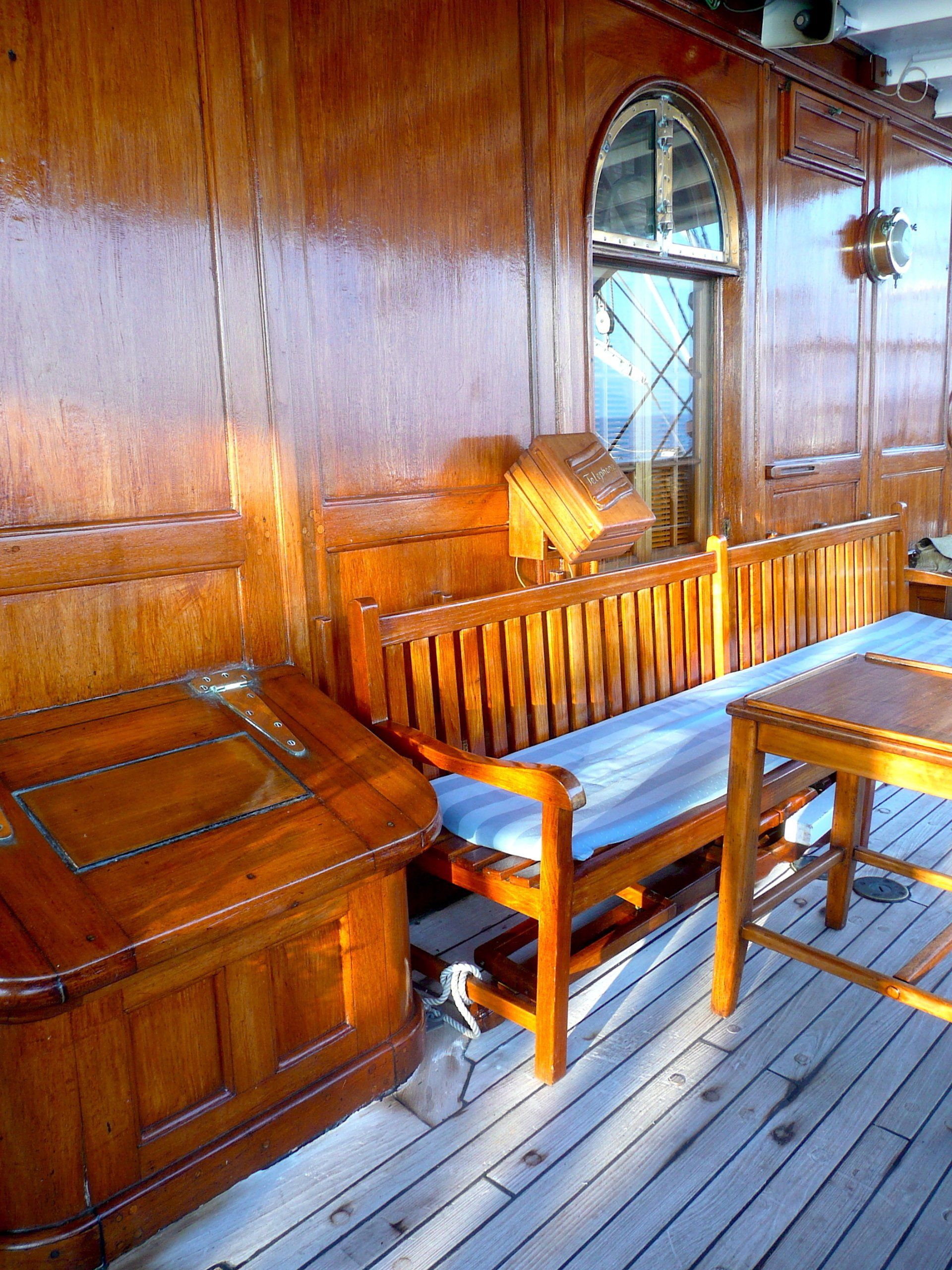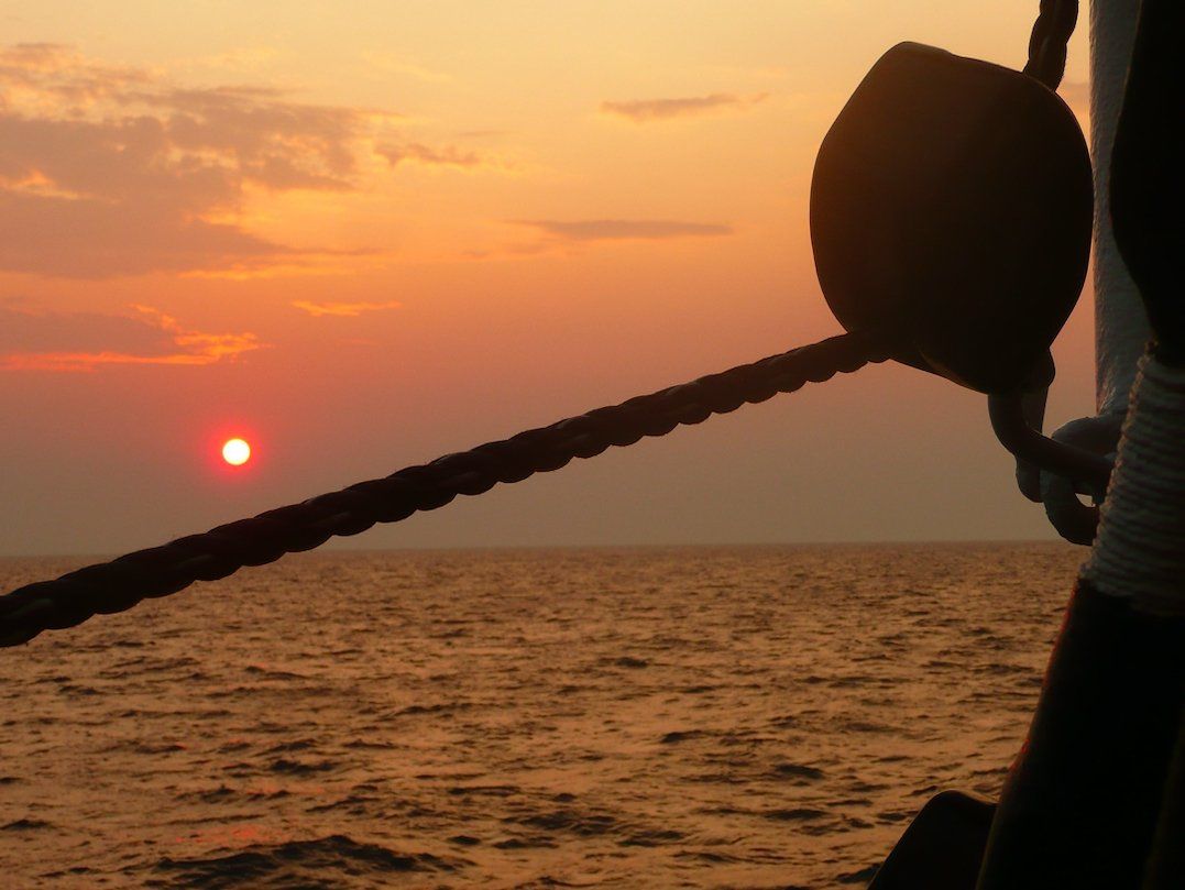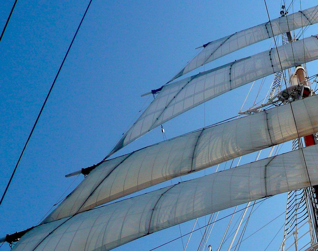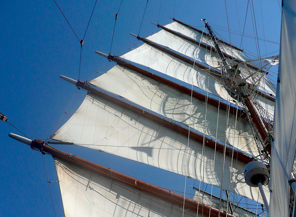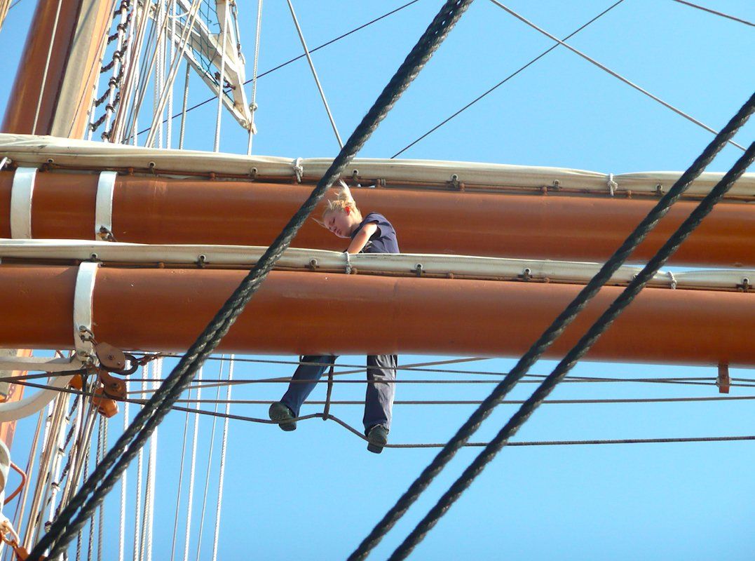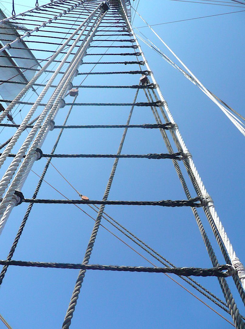 Ich saß auf meinem Lieblingsplatz gleich neben der Brücke, schaute der Mannschaft beim Klettern zu und dem Kapitän am Steuerrad. Und dann ging es los: