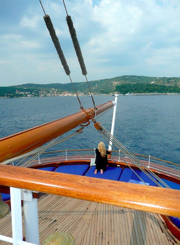 Manchen erzählt der Wind ein Lied. Mir hat er die Geschichte hinter der Geschichte des Mannes aus Ithaka erzählt. Doch vielleicht war es auch die Sea Cloud, die mir im Fahrwasser der Antike den Blick hinter die Fassade einer Sage schenkte. Denn auch sie ist mit allen Wassern gewaschen und wurde schon von so manchem fantasiebegabten Kapitän kreuz und quer übers Meer geführt. Einer von ihnen sah bei Sonnenaufgang häufig wunderschöne Nixen, die im Bugspriet sitzen…